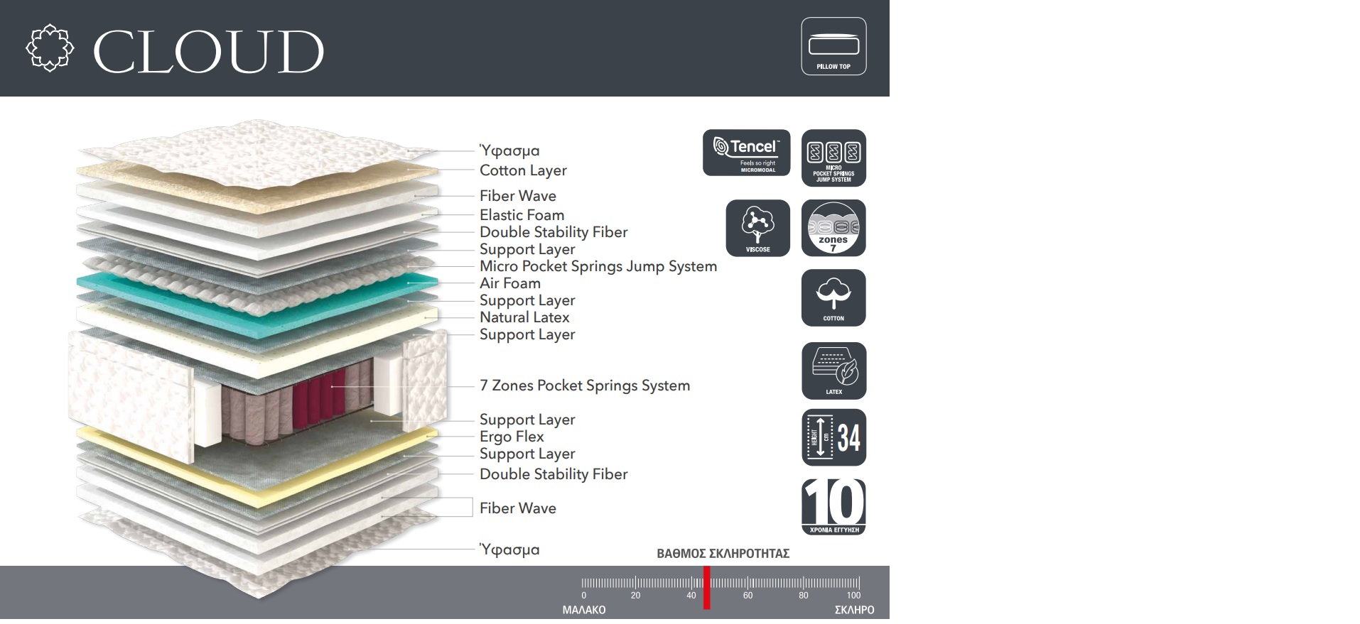 Fa?taste?te ?t? ????este st?? ap??a?t? ?a????, e?? pet?te p??? ap? ta s???efa. ?a??d???; ??? ?ta? ?ap???ete se ??a st??a Cloud. ?? d?p??? st??se?? e?at?????, ta p?? f??a ????? ?a? ? s?as?a se ???e ?ept???e?a ap??e?????? t?? ?p?? sa?! ?? st??a Cloud e??a? e?d??? s?ed?as??? ??a ?a ta?????e? st??? pe??ss?te???? s?at?t?p???. ?? e?s?at???? a??st??a PILLOW TOP d?a??te? se??? e?at????? micropocket spring p?? p??sf????? ??es?, sta?e??t?ta ?a? s?st? st????? t?? sp??d?????? st????. ?? ?fasa t?? st??at?? pe????e? Tencel Micromodal™, ????? e f?s???? ?a? a?t?stat???? ?d??t?te? p?? ap????f???????fa t?? ???as?a ?a? ????e? st? ?a????s? t?? ????? s?st?at?? ?at? t?? ?p??. ? s??d?as?? d?af??et???? st??se?? e?at?????: micro pocket springs st? a??st??a ?a? 7 zones pocket springs st? ??????st??a, ??a ?atas?e??? lineastrom, d????????? d?a???t?? ???e? ??es???a? ?p?st??????, ?at?????e? ??a d?af??et??? s?e?a t?? s?at?? (???, ?e????). O? ?ept?? ??e? Tencel Micromodal™ ap? p??t? ??? ?????,ap????f??? ??????fa t?? ???as?a ?a? ?????? st? ?a????s? t?? ????? s?st?at?? ?at? t?? ?p??.